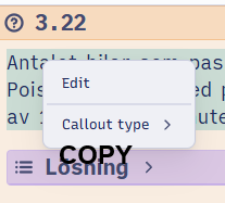 Enable some(?) context menu when right clicking text when its in a callout. There is no reason why I have to edit it, and then select the text to copy it.
