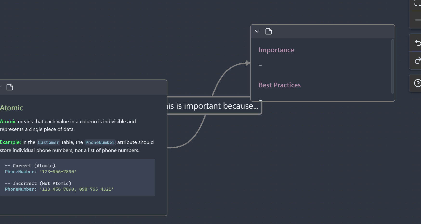 The biggest issue with Obsidian Canvas is how inflexible it is with trying to organize information neatly. In this particular case, moving the arrows/wraping the connection textbox is causing some issues.