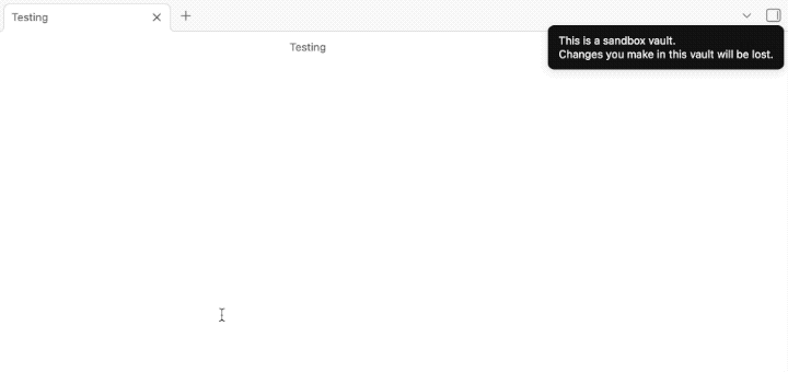 Below, a test creating a new note with Cmd-N, inline titles hidden, Sandbox vault, MacOS:
