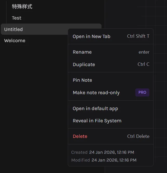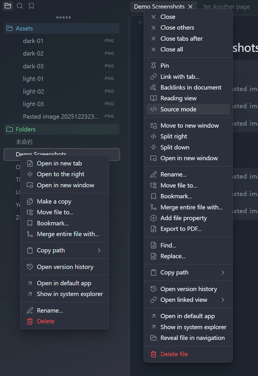 In comparison, this is Obsidian’s right-click menu:
