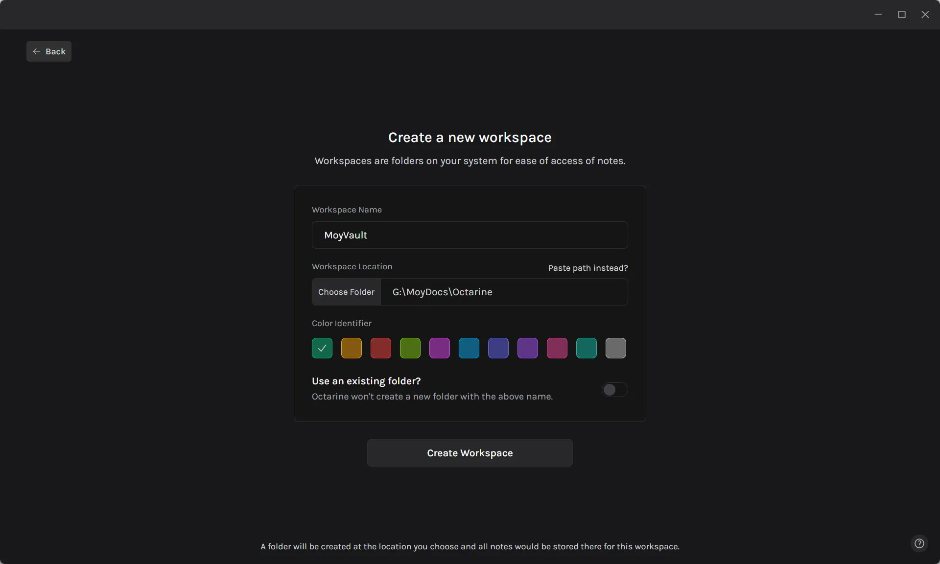 A good onboarding experience, when you open it you can directly start creating your first new workspace: