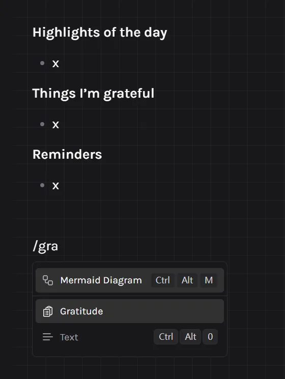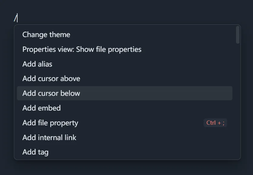 Obsidian’s native core plugin slash commands can also achieve similar functionality, but they give a bit too much, which is unfriendly to beginners: too much information = confusion