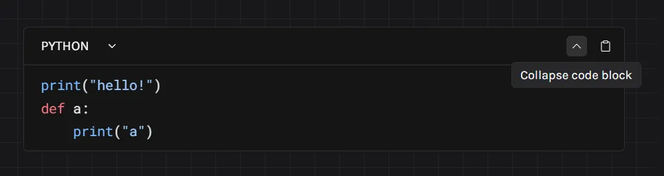 Code blocks come with collapse buttons:
