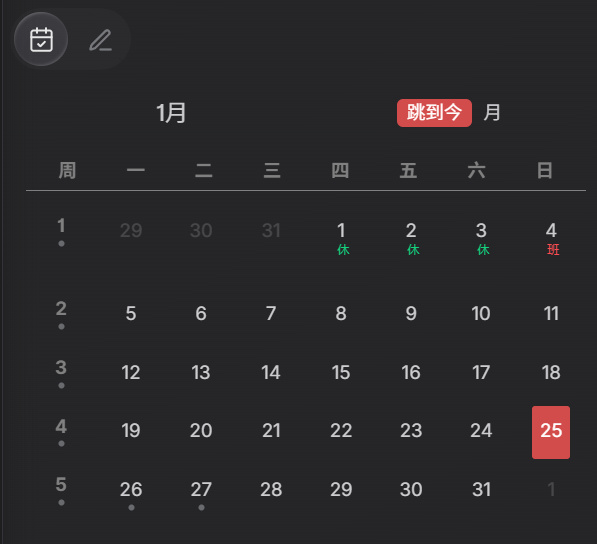 Native built-in calendar view: