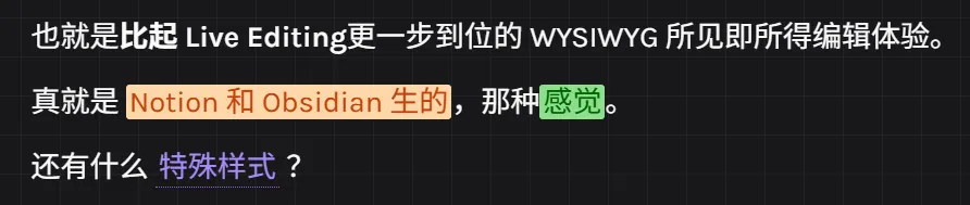 This is ==🟠a combinition of Notion and Obsidian==, that ==🟢feeling==.`