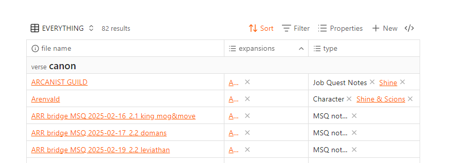 Note the truncation of value names in anything that only has one value per cell for a property column.