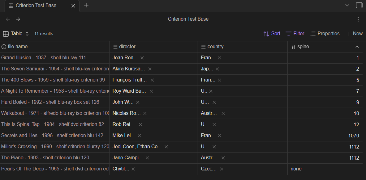 I moved the spline column to the first position (left of file name) then I added the “director” list, and then the “Country” list. I moved spline to the right of Country to show how much room there was in the Country column to display the values.