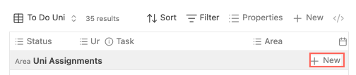 I have a base view that shows just Uni To-Dos (Filter: area starts with uni). In this view, I use the “group by” function to differentiate Uni To-Dos by type (uni seminars, uni assignments, uni readings).