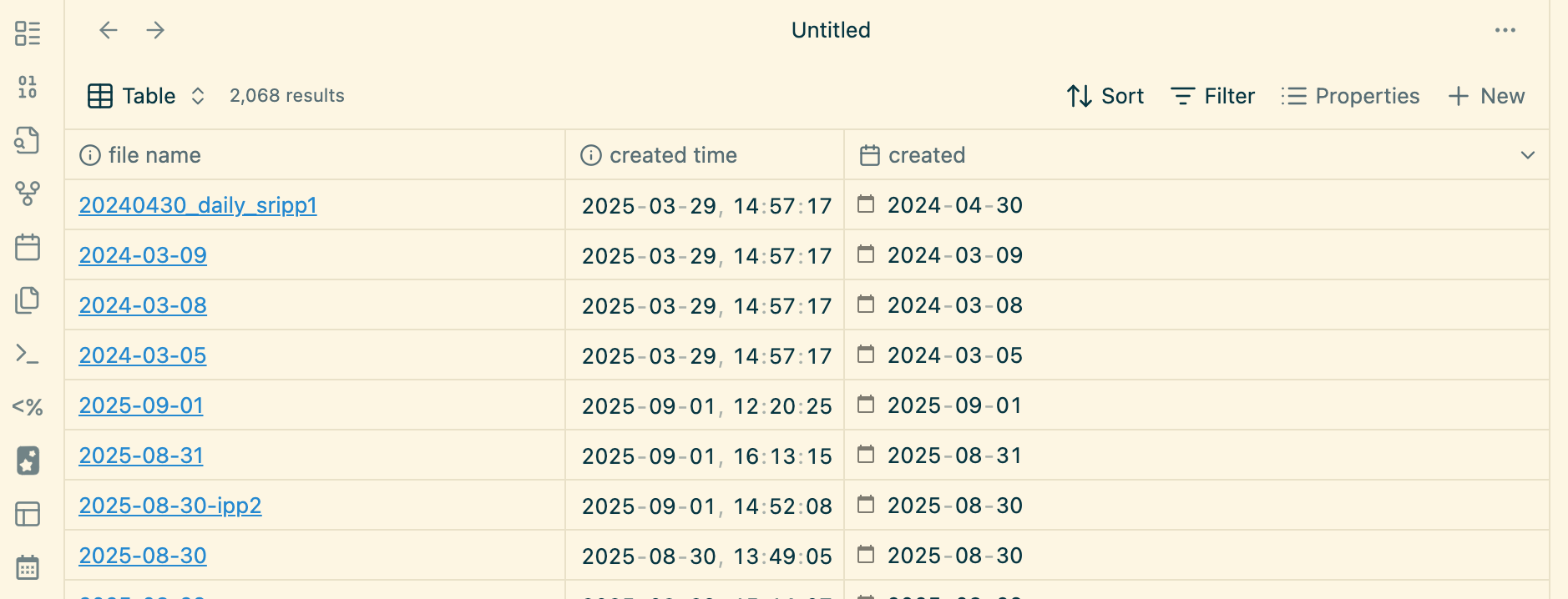 I am trying to sort bases table by a yaml field I created for all files named created. It is a date format. I add this field into the bases properties try to sort descending. I see that the sort is broken - see the screenshot.