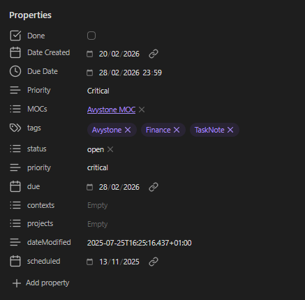 you can see I have priority property twice. It is because I used to do it manually through data view (where I used “Priority”), I now use TaskNotes plugin that uses “priority”. my goal now is to merge everything into the lower case priority. I should have just adjusted the field mapping on task notes, but its too late now as too many notes are like this, I just have to commit.