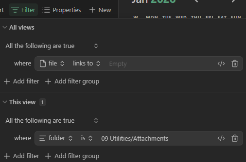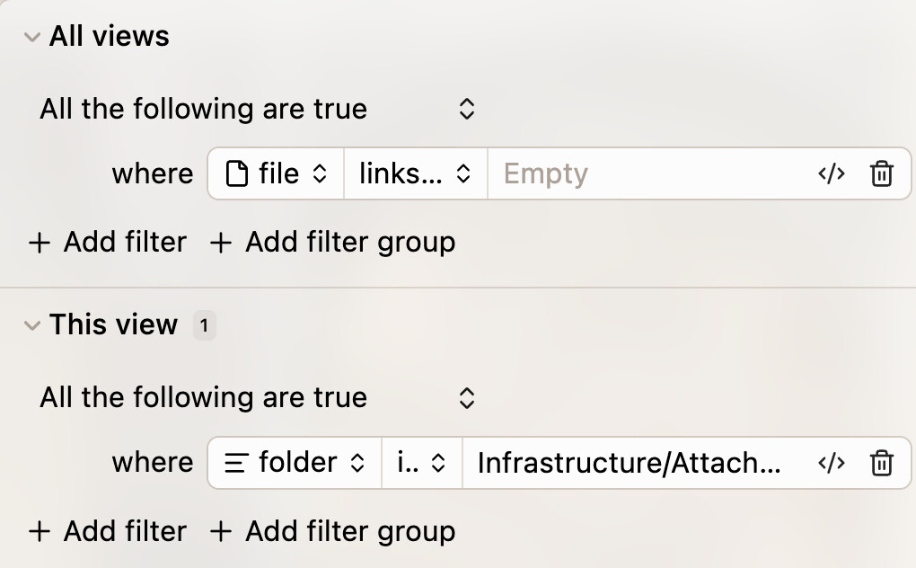 Create Views that show all linked files â aka all Notes where the Attachment (Image) is used (linked to) and the number of files that use the Attachment (helping with vault-cleanup)