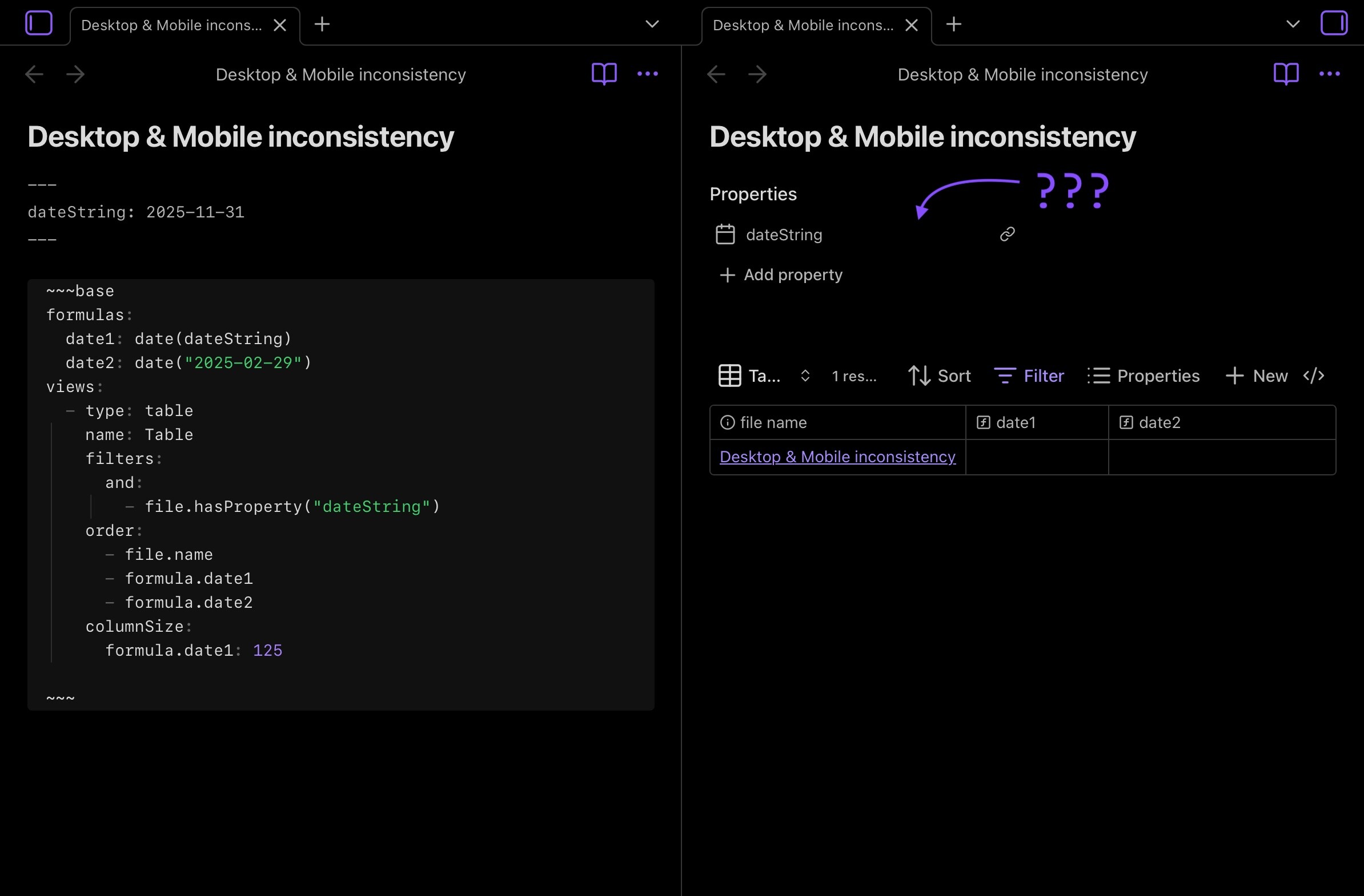 This was spotted by someone looking for help in the dedicated #obsidian-bases channel trying to build a “birthday tracker” using a base which didn’t seem to work for someone born on a leap day: here …