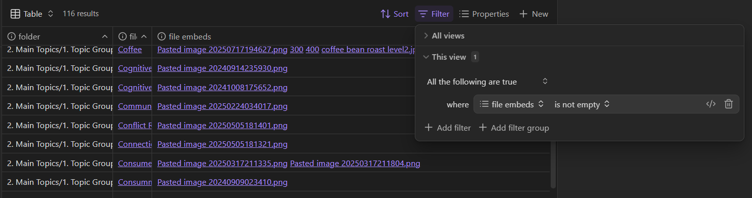 I start with using the bases to list all files with embed. but struggle to identify by extension