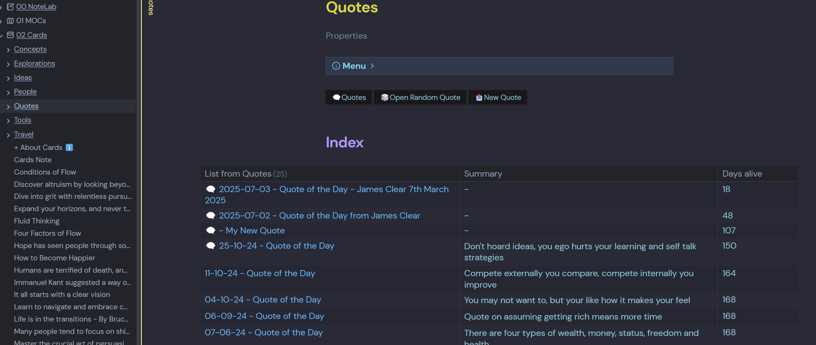 Created an Index Folder Note in my 02 Cards Folder