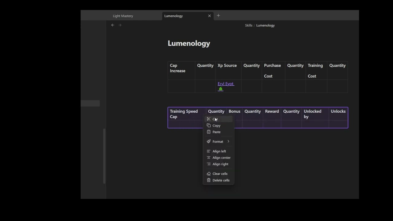 The table may be empty, or have text, or numbers, or [] links to other files. It’s useless, and it was working perfectly fine today, until it decided to not work anymore. And then, some times at randmon, it gets fixed for a few seconds and it lets me copy & cut again.