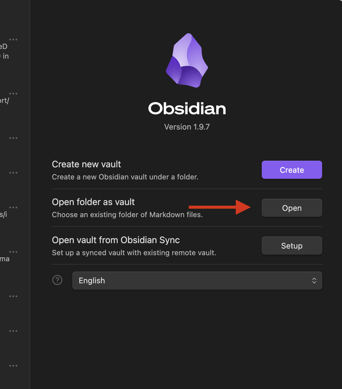 Under Open folder as vault, click Open and using the Finder or Windows File Explorer navigate to the vault’s new location and choose it.