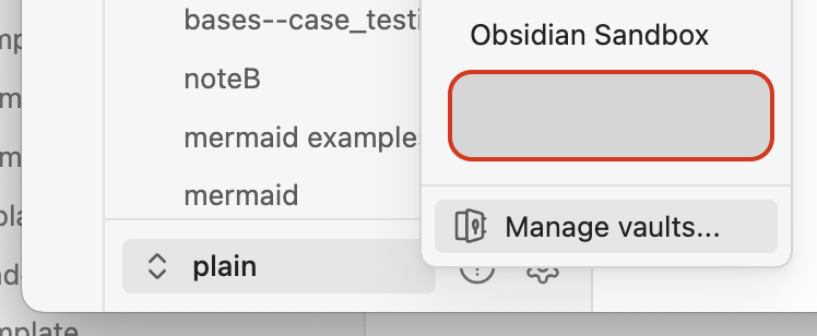 In the Sandbox vault or a test vault, click on the vault name in the lower left sidebar: