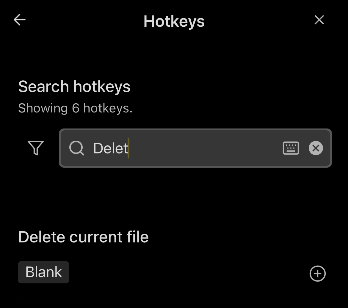 I don’t see the option to delete file when i search in the keyboard shortcuts: