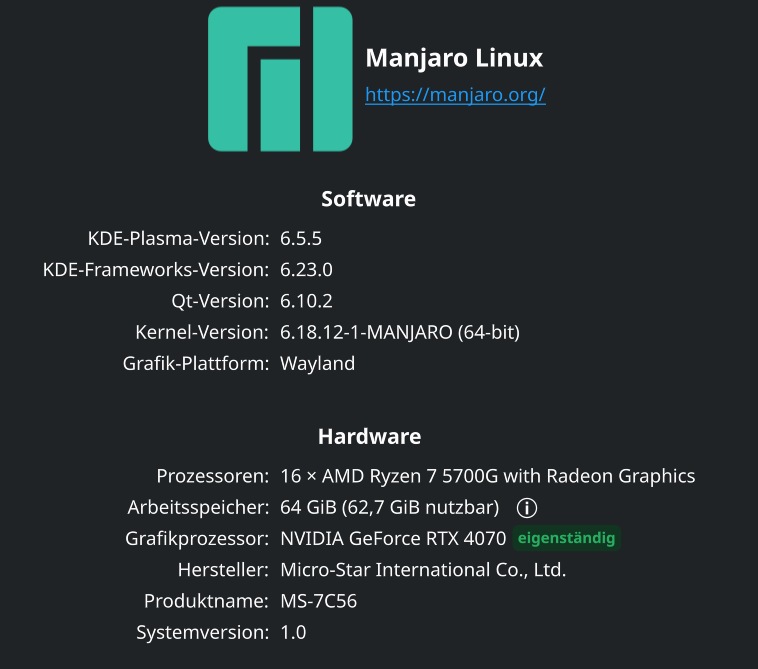 Operating system: #1 SMP PREEMPT_DYNAMIC Mon, 16 Feb 2026 21:35:51 +0000 6.18.12-1-MANJARO