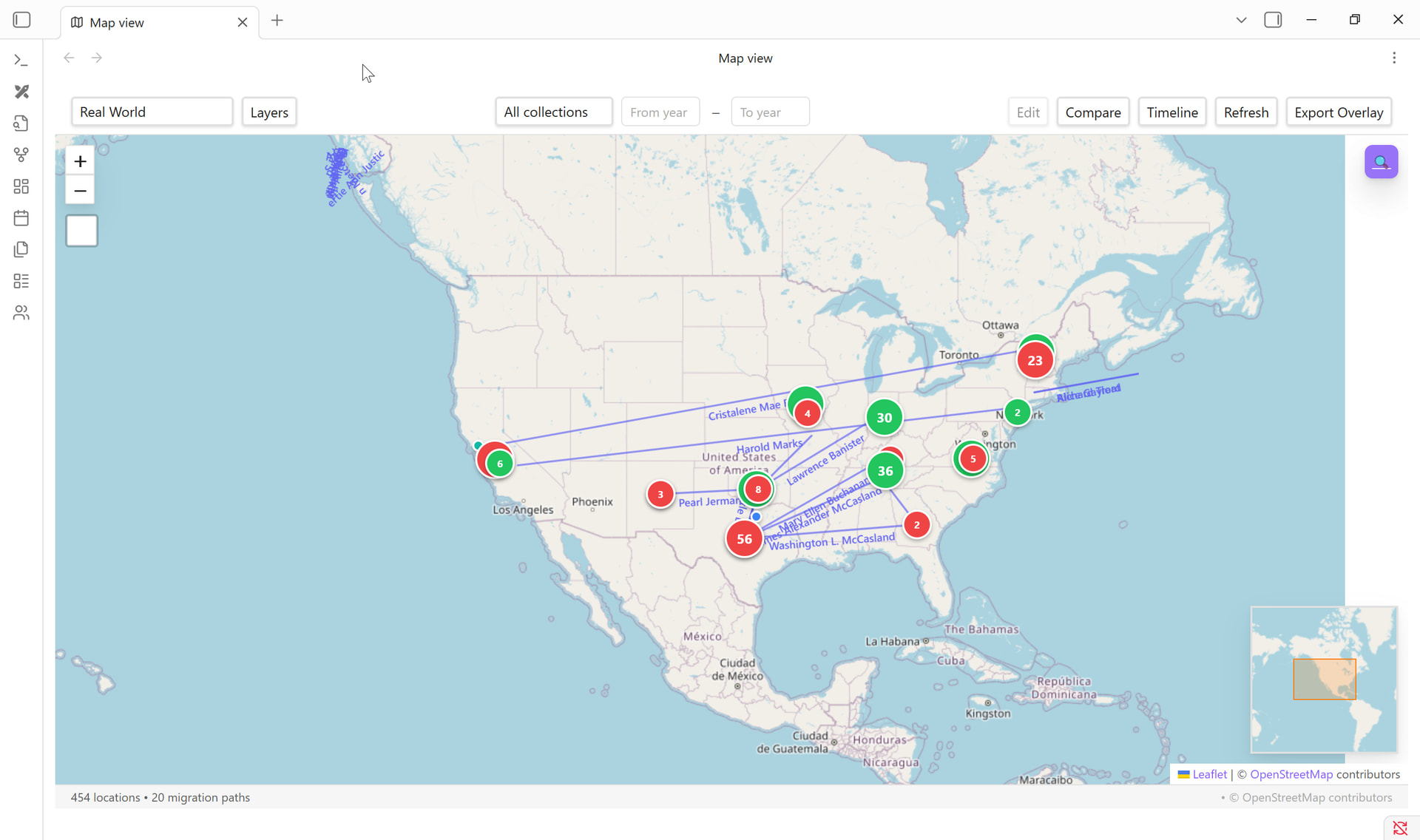 Event notes with 22+ event types, date precision, confidence levels, and before/after relationships