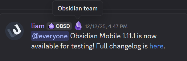 We also have no good way to verify the provenance of the .apk files on this channel. I have a lot of assumptions about where it comes from, but no guarantees. I would guess that the admins have restricted file uploads on the server so only Obsidian reps can upload an apk. But that’s just a guess. But even then, when I skim through this discord I’m not even sure who the obsidian reps are. Can’t be the OBSD tags, though that was my first thought. Is it those with purple text? How do I know that an .apk is actually from Obsidian? Sure if I’ve already installed the catalyst version then upgrading will validate the updated package’s signature, but if I’m switching back from the production version?