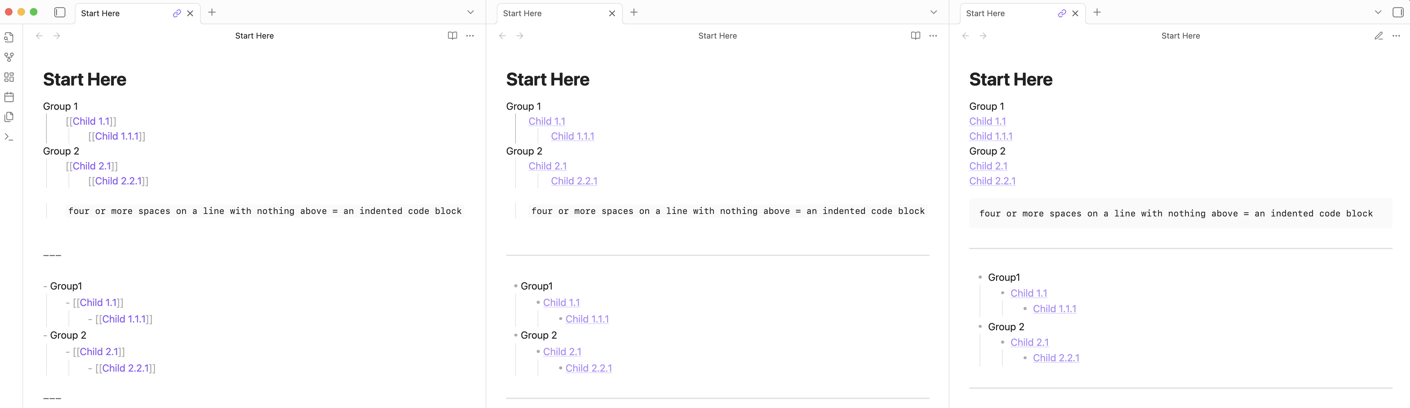 ) directly above the indented line so the editor happily shows the indent and lets you fold it, but as you can see the space is removed in Reading view.