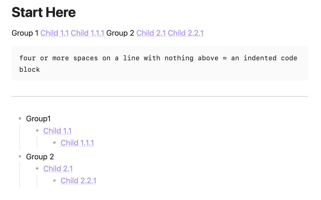 Typically in Markdown, if you indent (four or more spaces / a tab) a line on its own outside of a sub-list you create a code block.