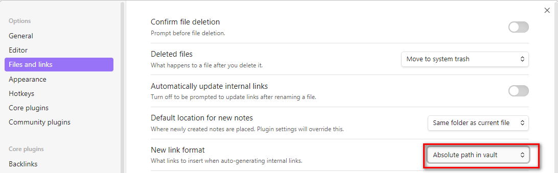 Copy relative path - copies an absolute path in vault.