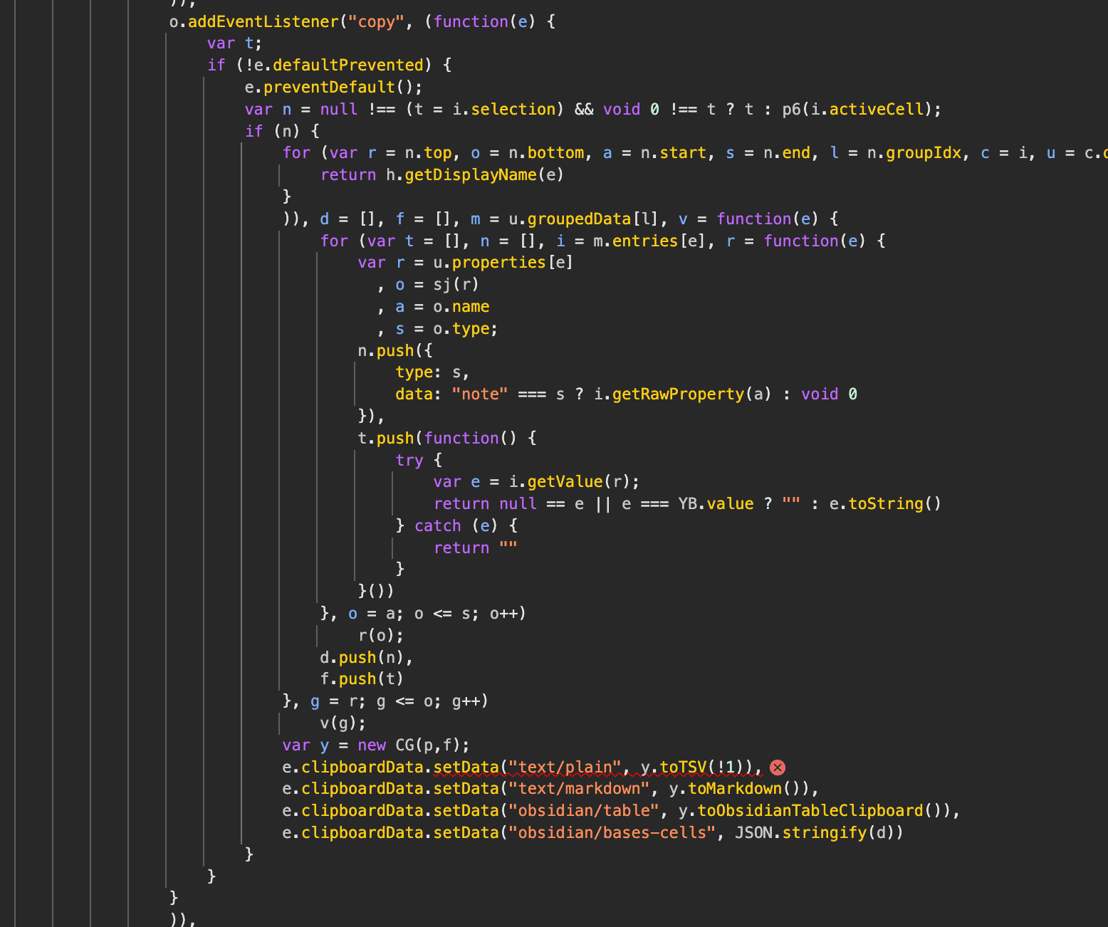 This happens in the addEventListener("copy", ...) function.