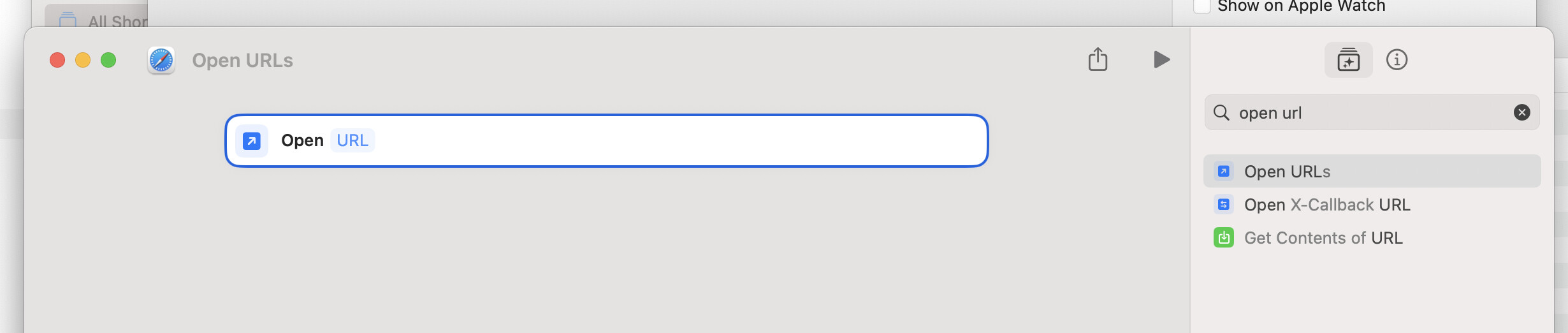 - Search for Open URLs and drag it in