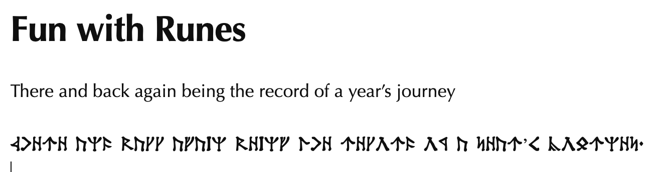 I wanted to change the strikethrough font to Angerthas (Dwarvish runes) so that I could put them in my text simply by applying the ~~strikethrough~~ tag. I isolated a bit of strikethrough text in the dev tools to find the correct selector, then changed the font family and removed the text decoration in a CSS snippet:
