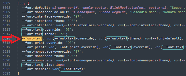 Does formatting applied to Obsidian variables override formatting applied to CSS selectors?