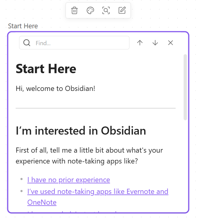 - Insert note “Test” into the canvas