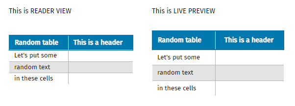 I changed each table style so that you in dark mode get the correct colors, able to see cursor against white backgrounds, different selection colors etc