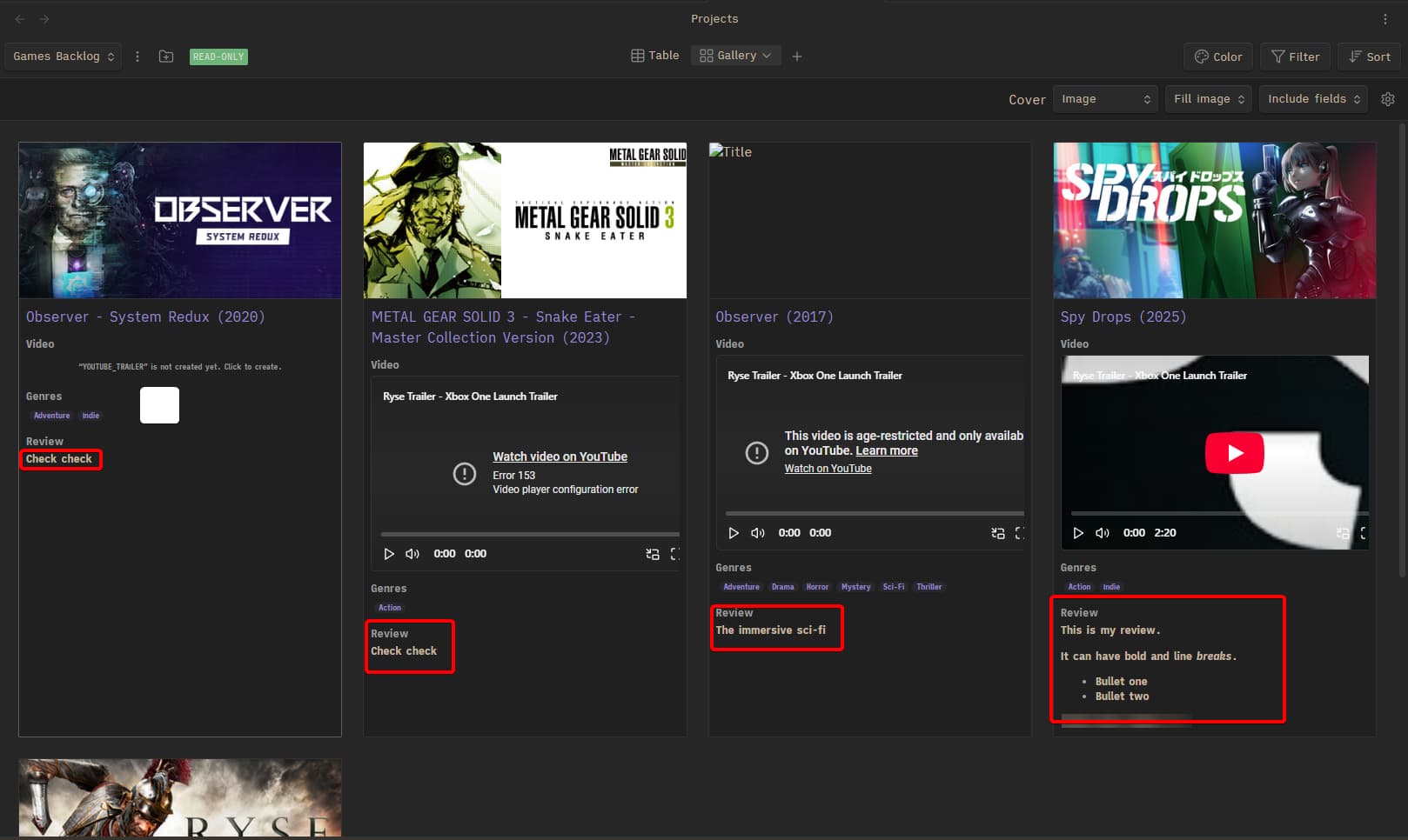 I used obsidian-projects to make my backlog database of movies and games. I use the Media DB plugin to grab games/movies info from TMDB, Steam, etc.