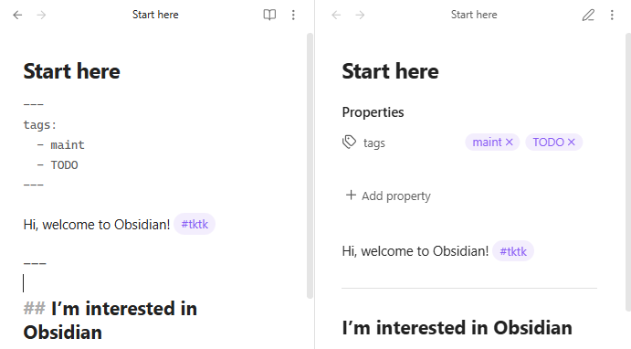 Tags in the body are easier to use in other apps. I don’t know of any apps that support properties (at least not in the same way Obsidian does), but some support hashtags. And even an app that doesn’t support hashtags can still use them if it supports searching multiple files.
