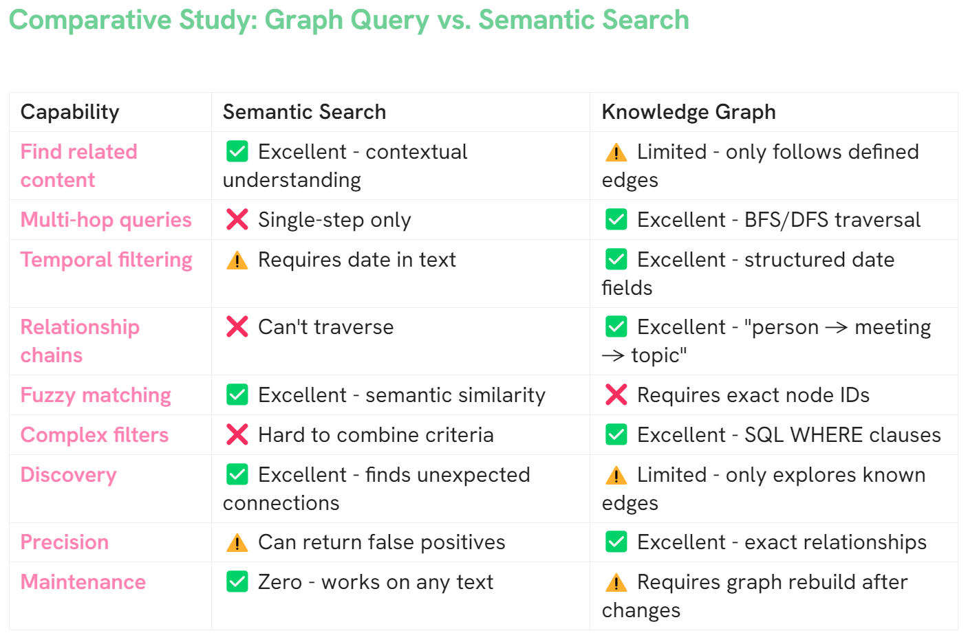 - Temporal context gets lost (20 meetings with someone over 2 years becomes just