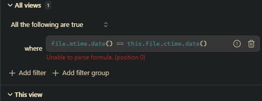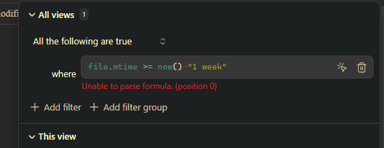 I use bases to show me files updatet on the date of my daily note and updated today and in the last week. This worked fine but now i get this errors.