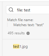 The placeholder text in the box where you add filters only says path or "/regex/", which is why I said *.jpg shouldn’t work. I tested that too and found the behavior you described. But try it without that filter, and you’ll find the same thing. Search seems to not search in attachment filenames (but does search in note filenames). I don’t know if that’s intentional. And I’m not sure now if *.jpg is intended to work or not. I’m guessing no, but it would be convenient if it did since it’s a common convention. Unfortunately the Excluded Files setting isn’t documented in Help; the only info is what’s given in the UI. "Excluded files" setting is undocumented · Issue #956 · obsidianmd/obsidian-help · GitHub