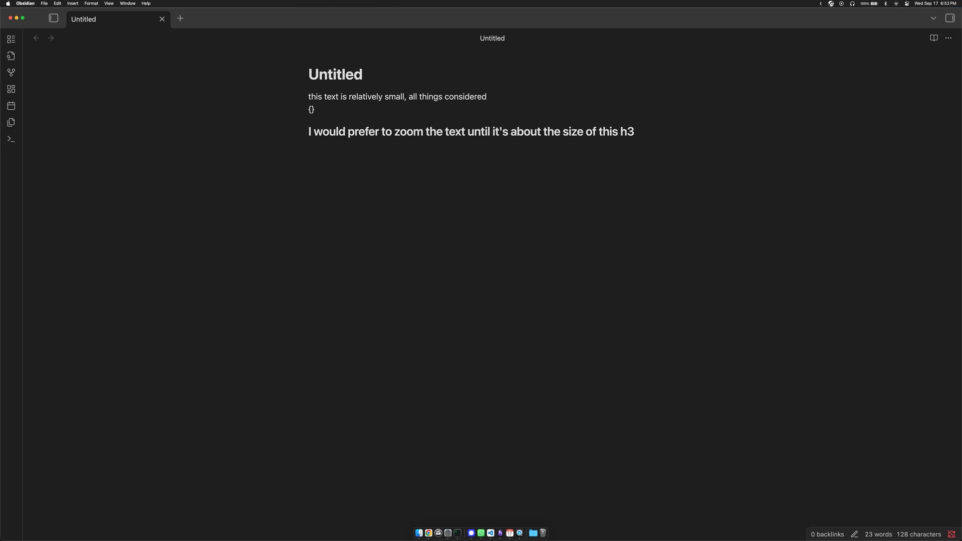 There’s a fairly low max font size in obsidian on mac. I have bad-ish eyesight and that makes it very difficult for me to use obsidian, especially on large monitors.
