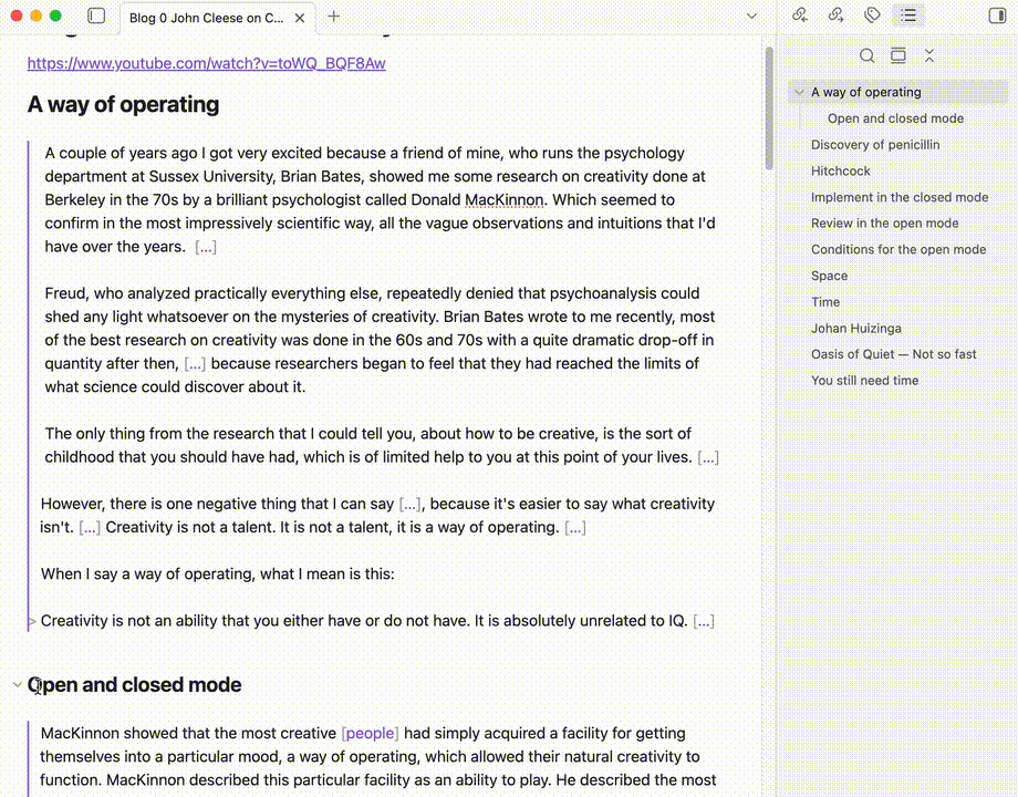 When a heading has subheadings under it, it is collapsible in the outline sidebar (TOC, table of contents). When you change the document so that a heading no longer has subheadings, the former-parent keeps its collapsible triangle. The icon is stale, and stuck, and remains out-of-sync with no apparent recovery (including making changes to other headings, re-opening the outline, or switching tabs).