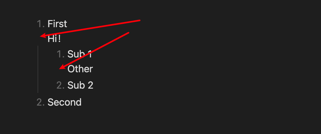 I inserted a piece of text in a list using indentation. In edit mode the list rendered column lines, but in preview mode the column lines disappeared.
