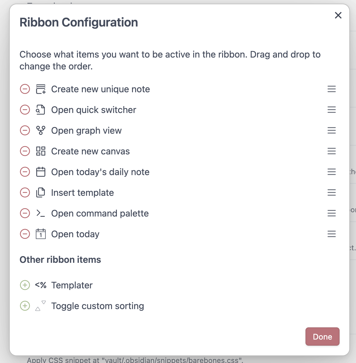 I’m trying to hide the Custom sort and the Templater buttons.