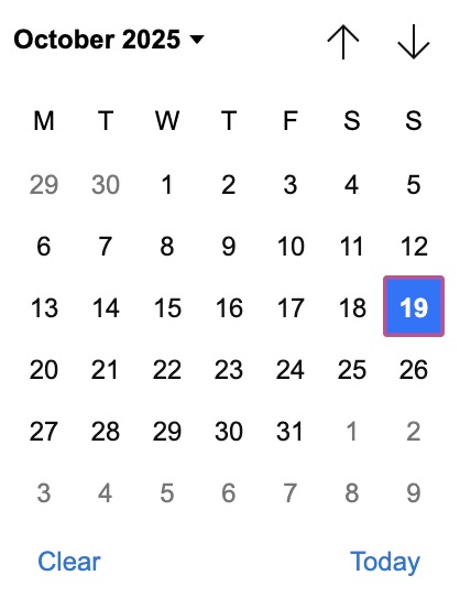 The month and week days names are automatically localized to your language. The “today” cell is highlighted.