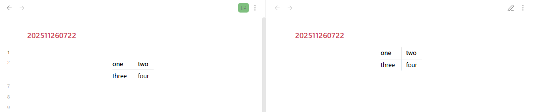 > | a | b |