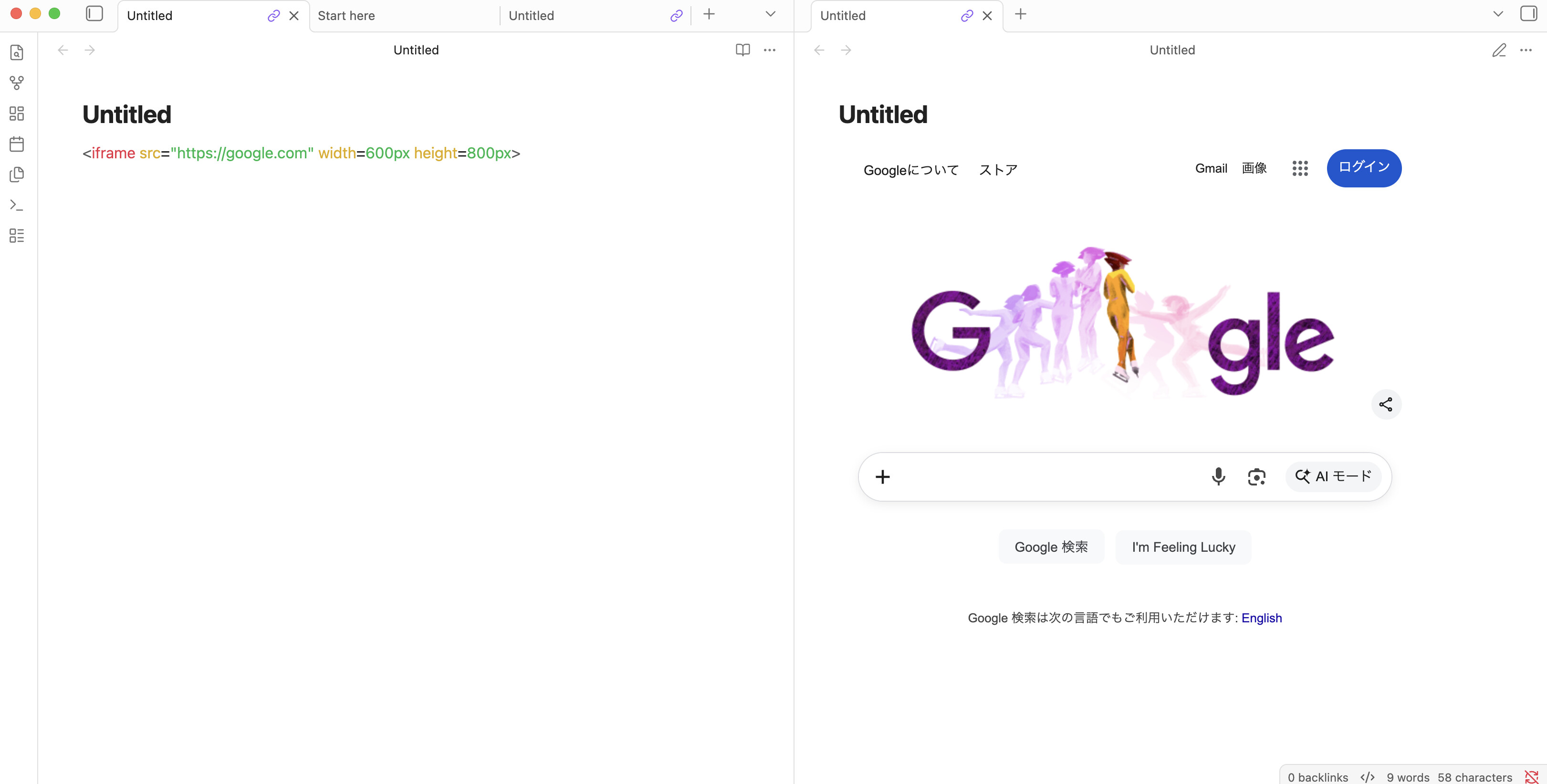I expect to see an embedded website in my note.