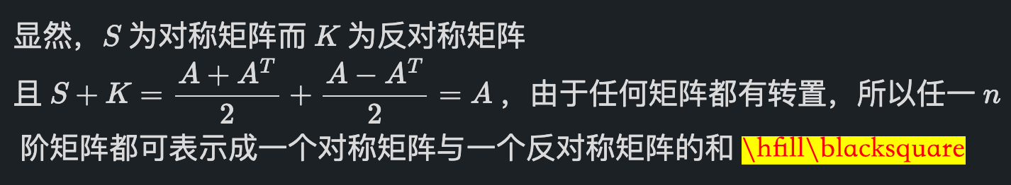 And this usually appares when there is invalid grammer, so I wonder if I can do that by using \hfill, if so how; and if not, what should I do to add the tombstone to the end of the line without using multi-line math?