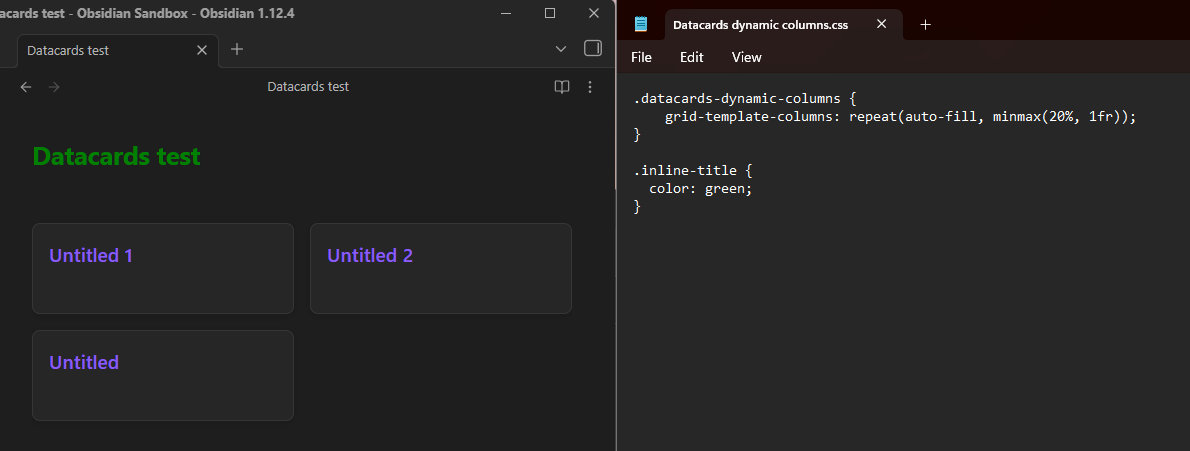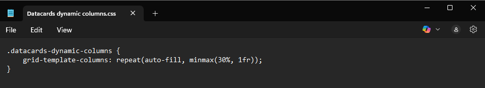 In the demo above, I used 60%, 40%, then 20%. If you want a fixed size for your cards, you can use pixel values instead of % → minmax(200px, 200px). Follow the instructions below to create your own CSS file if needed, then paste the code in it.