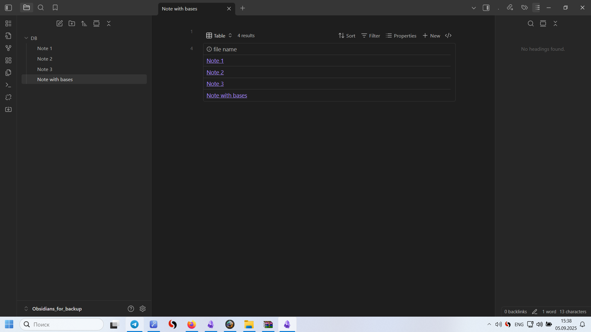 The fact that some notes appear together in a Base does not constitute a link (in the obsidian sense) among those notes or between the base file and those notes.