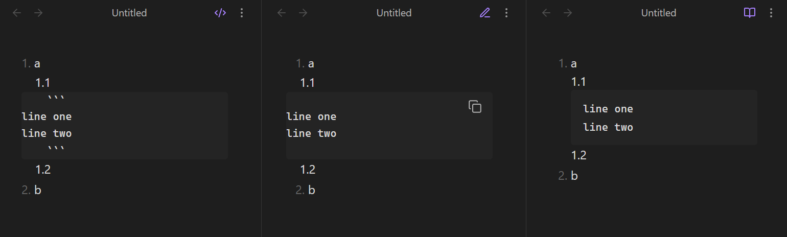 However, Live Preview’s rendering is visual ambiguous about the indentation level.